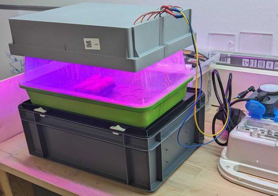 Testaufbau für hydroponischen Pflanzenanbau